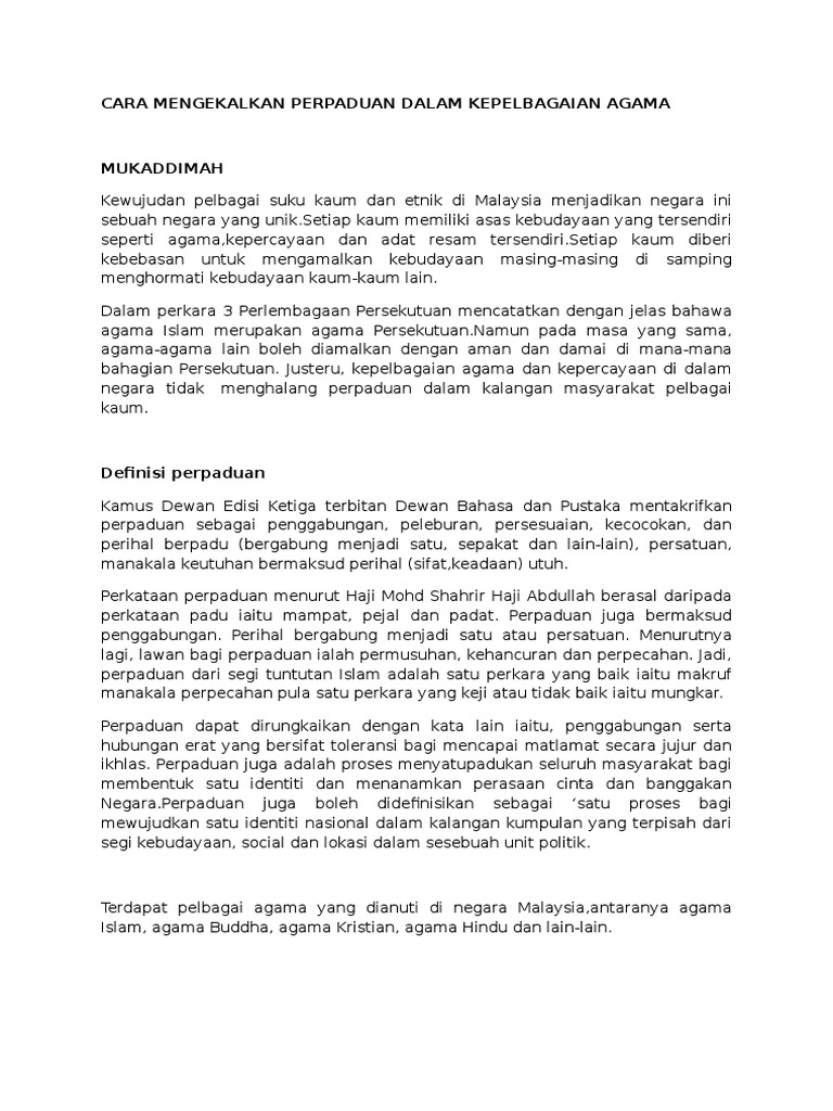Malaysia Merupakan Sebuah Negara Yang Unik Kerana Masyarakatnya Terdiri Daripada Berbilang Kaum Dan Agama Pdf