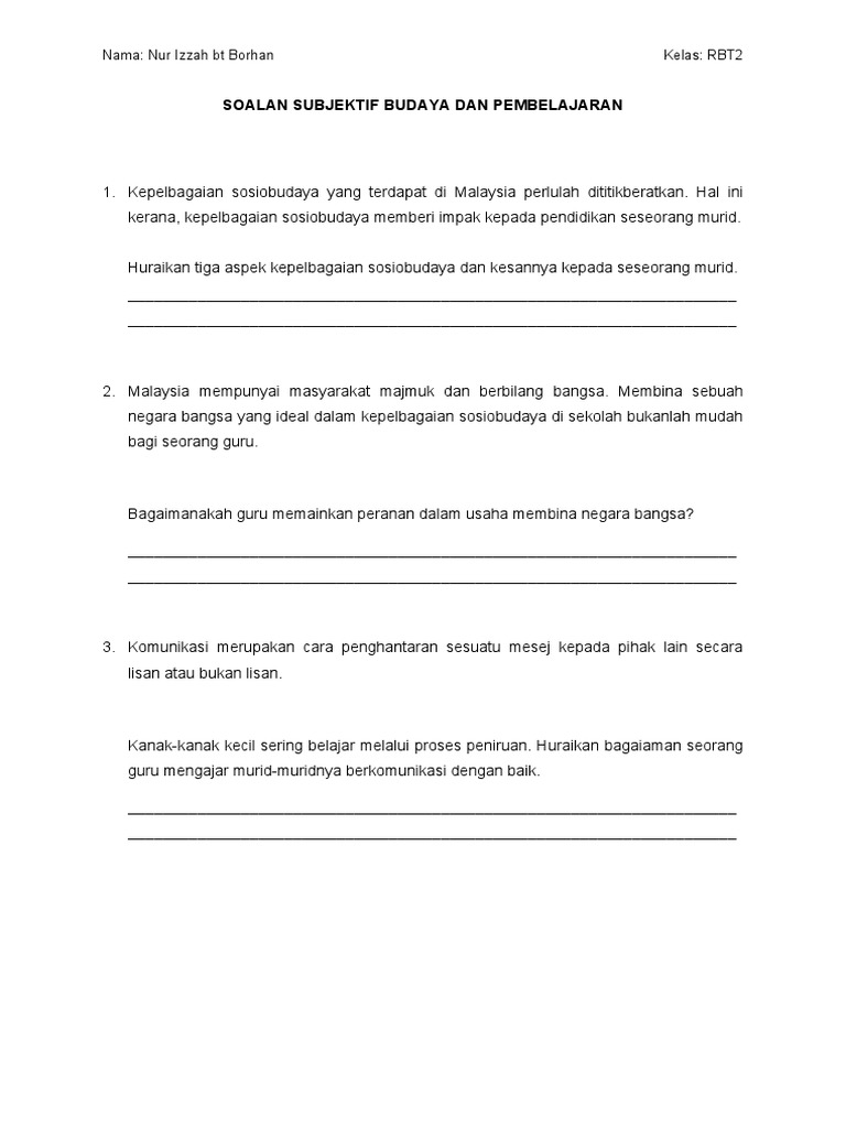 Contoh Soalan Tentang Budaya Di Malaysia By Tia_434Troy 07 Jul, 2022 Post a Comment Contoh Soalan Budaya Pdf Contoh Soalan 2 Edu 3106 Contoh Soalan Budaya Pdf Soalan Subjektif Budaya Dan Pembelajaran Pdf Contoh Soalan Hubungan Etnik Dan Jawapan Pdf Share No comments for "Contoh Soalan Tentang Budaya Di Malaysia"